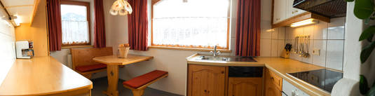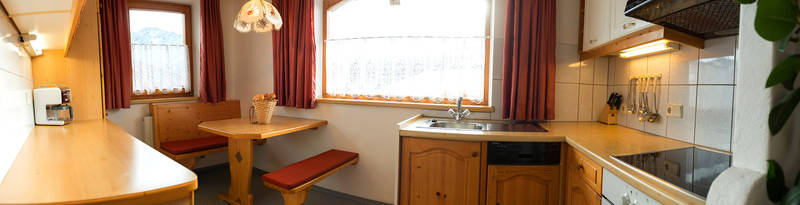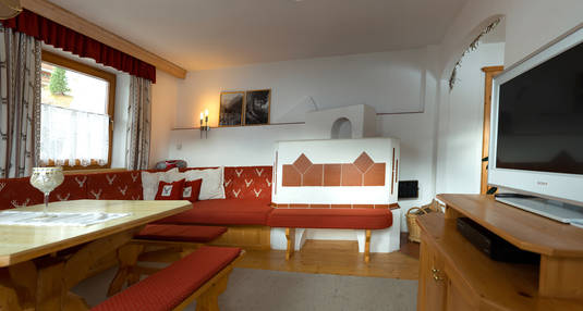 Das 85m2 grosse Appartement liegt im 1. Stock, ist mit hellem Fichtenholz eingerichtet und besteht aus geräumiger, komplett ausgestatteter Küche mit Vorratsraum und Essecke. Weiters gibt es eine direkt verbundene Wohnstube mit grossem Tisch und gemütlichem Kachelofen und Sofa. Zwei Doppelschlafzimmer ein Bad mit Wanne und ein seperates WC runden das Wohlfühlerlebnis ab. Zur Wohnung gehört auch ein kleine Terrasse und ein grosser, südseitig gelegener Balkon.